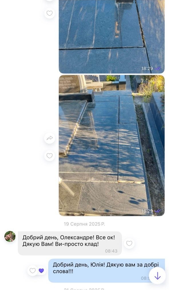 Надаємо повний комплекс ритуальних послуг: виготовлення та встановлення пам’ятників, облаштування і догляд за могилою, оформлення та благоустрій території, широкий вибір ритуальної атрибутики, професійна допомогу в організації поминальних заходів.